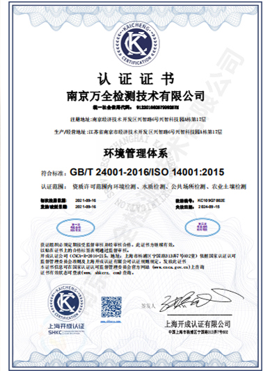南京萬全檢測技術有限公司,籌建于2013年1月,注冊資金500萬,公司坐落于南京經濟技術開發區興智路6號興智科技園A棟17層,實驗室占地面積1750余平米。公司是一家獲得省級CMA計量認證資質、具有獨立法人、政府認可的綜合性、專業性的檢測機構。環境監測業務是其重要的檢測業務之一,目前已獲得省級計量資格認可項目314項,設備齊全,具有較強的技術能力。
